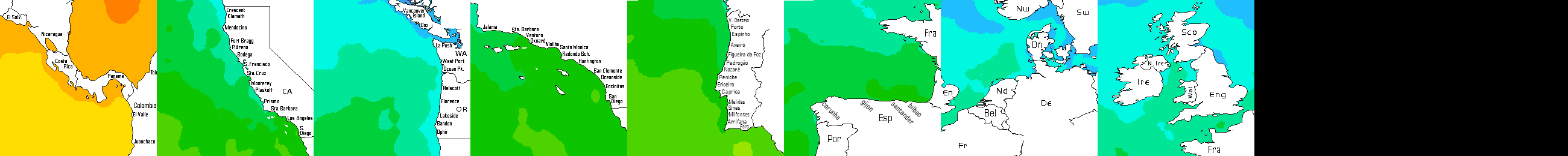cores do gráfico: potência das ondas, Kilowatts por metro (kW/m)