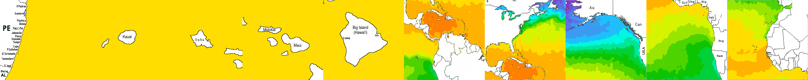 * Temperatura da superfície do mar perto da costa. Diferenças podem ocorrer dentro das baías e perto da foz dos rios, devido à influência das águas costeiras.